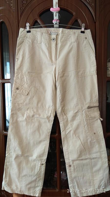 Спортивні штани, карго, розмір 42-44, загальний стан дуже хороший, є маленька дірочка, колір бежевий..