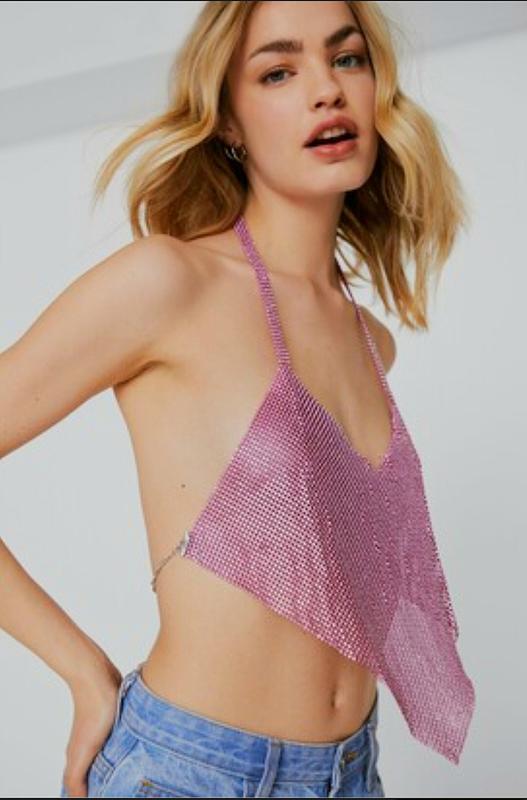 Цей топ у вигляді кольчуги та має високу горловину, розслаблений, укорочений силует, подол у вигляді хустки, V-подібний виріз і застібка на спині. Чудово підходить для стилю з прямими джинсами та масивними байкерськими черевиками. розмір вказан універсальний 100% aluminium