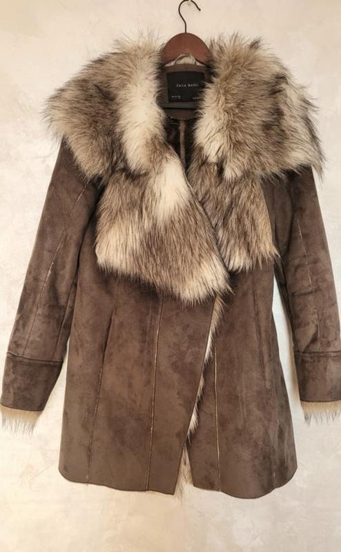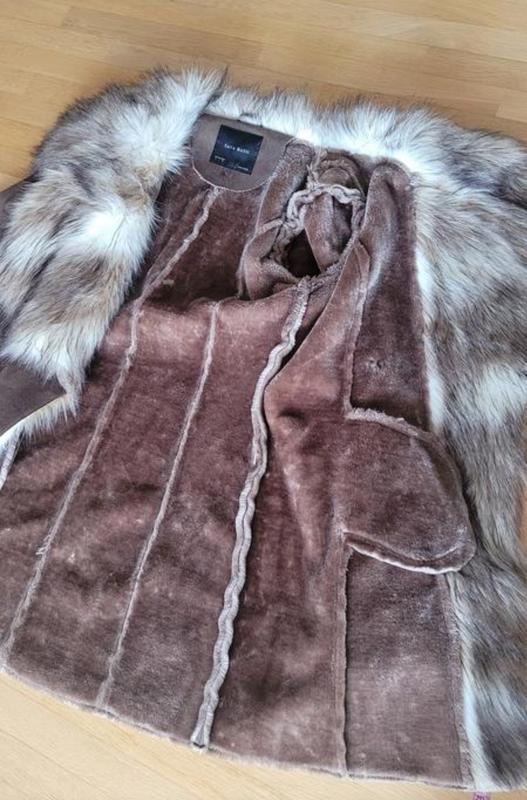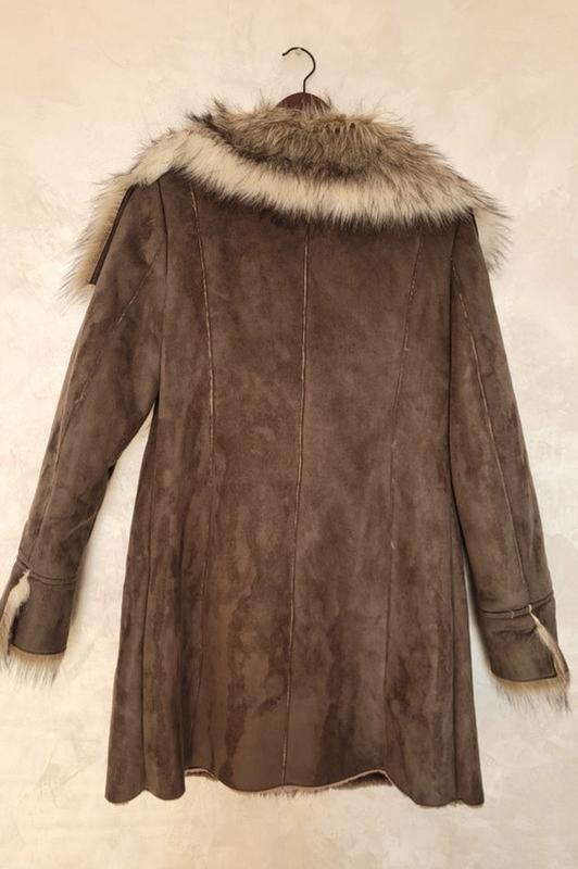 дублянка пальто полупальто з хутромстан новазастібається на глибокий запах на гудзикдуже м'якеньке тепле і легкер.12вдягнене на р.10пог 54 пот 50 поб 61довжина 90 плечі 46 рукав 67