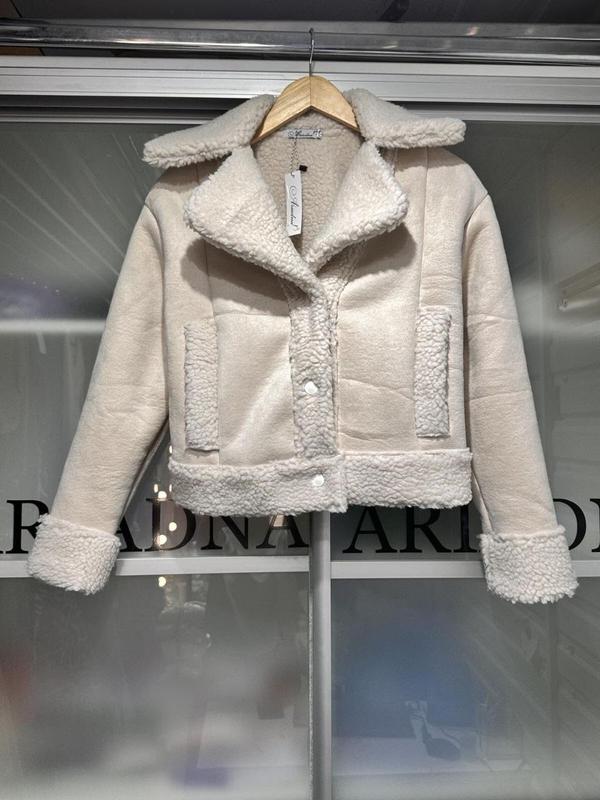 Стильна і тепла дублянка з врізними кишенями, комір з відворотом.