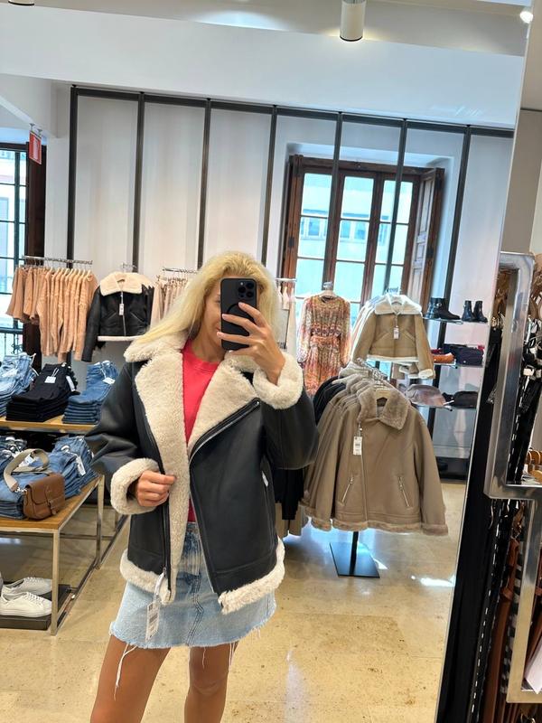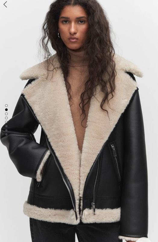 Новая черная эко-дубленка демисезонная на молнии с белыми вставками