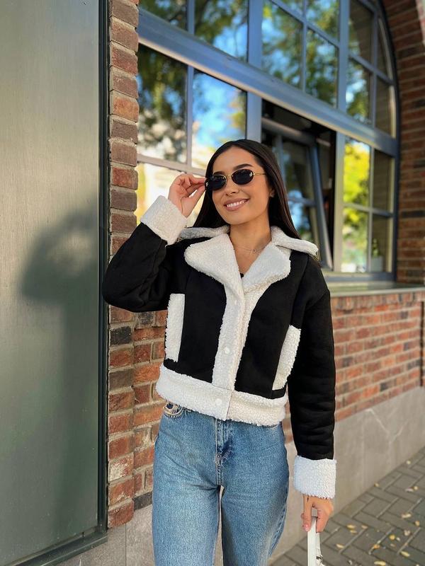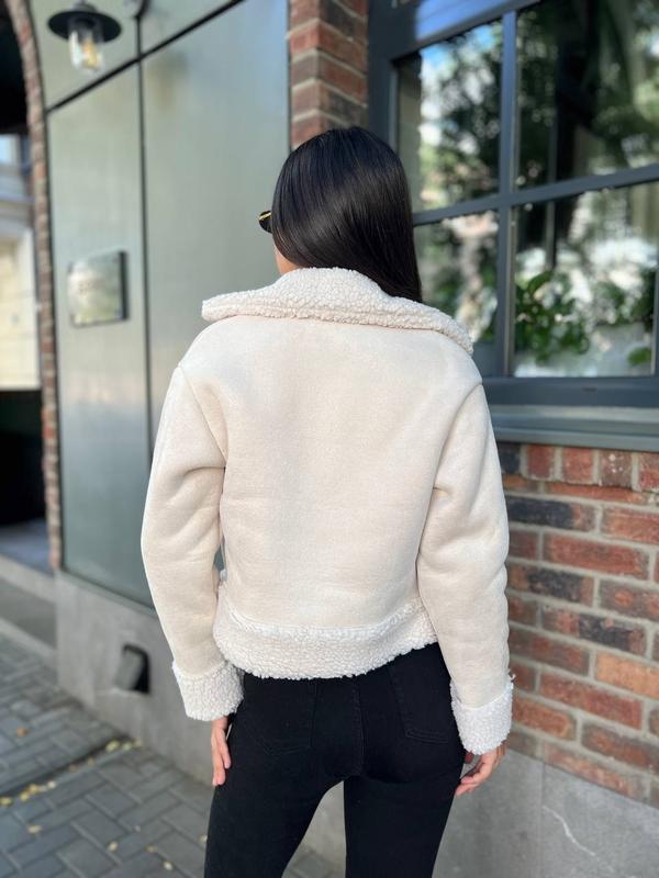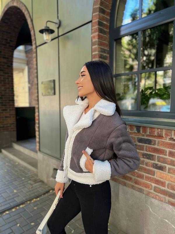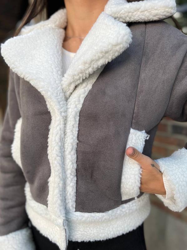 Стильна та тепла дублянка, з врізними кишенями, комір з відворотом.