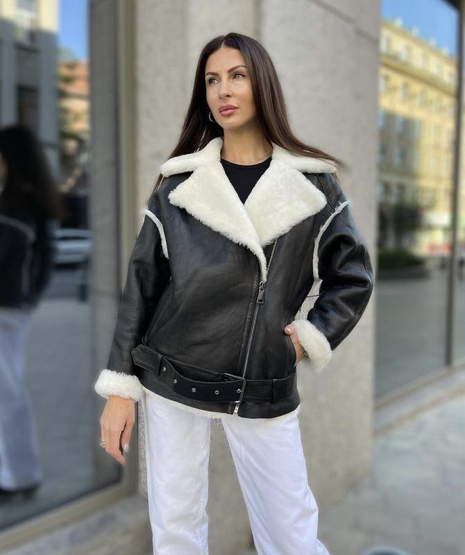 Тренд сезону!!! Шикарна дублянка, "авіатор", виконана з натуральної високоякісної шкіри,люкс класу ,на овчині. Декорована якісною фурнітурою має дві бічних кишені, ремінь