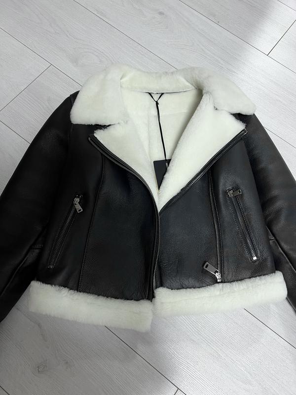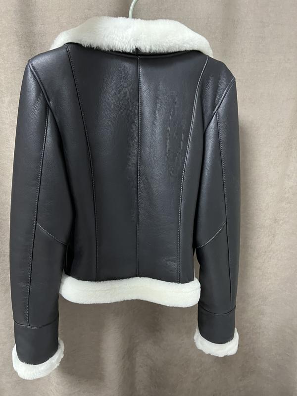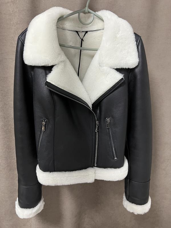 Нова шкіряна дублянка, хутро вівці. Розмір S, Заміри: довжина- 57 см, довжина рукава від плеча - 66 см (регулюється), плечі напів обхват - 39 см, талія - 40-41 см, напів обхват грудей - 44 см, ширина низу (напів обхват) - 42 см