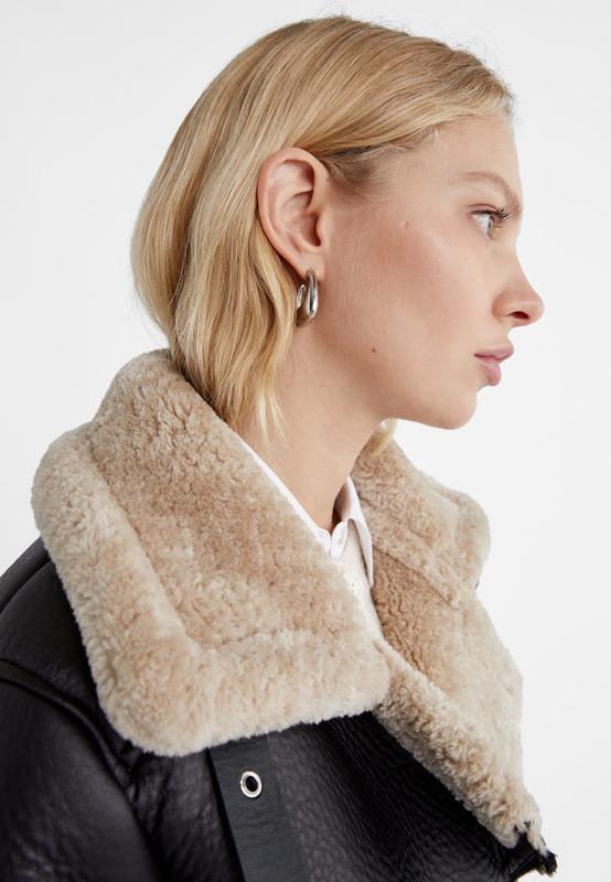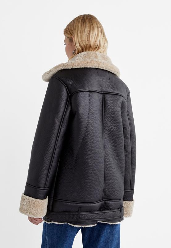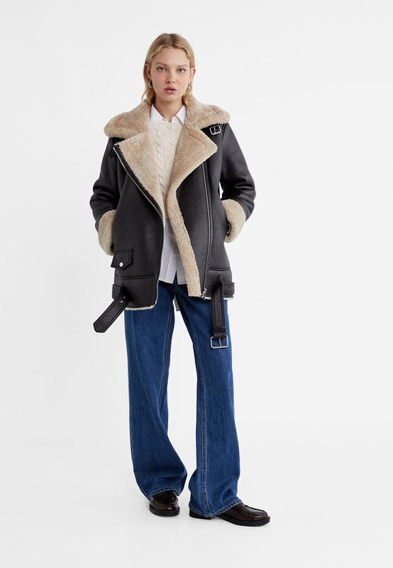 В наявності Байкерська куртка з лацканами та довгими рукавами. Кишені з металевою блискавкою спереду, ремінь внизу та контрастна підкладка зі штучного хутра. Застібається спереду.