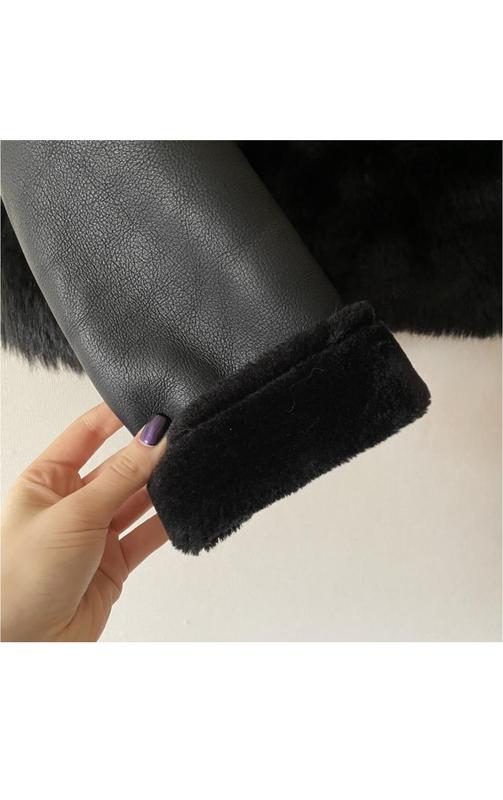 Коротка чорна дублянка на блискавці дублянка зі штучного хутра
