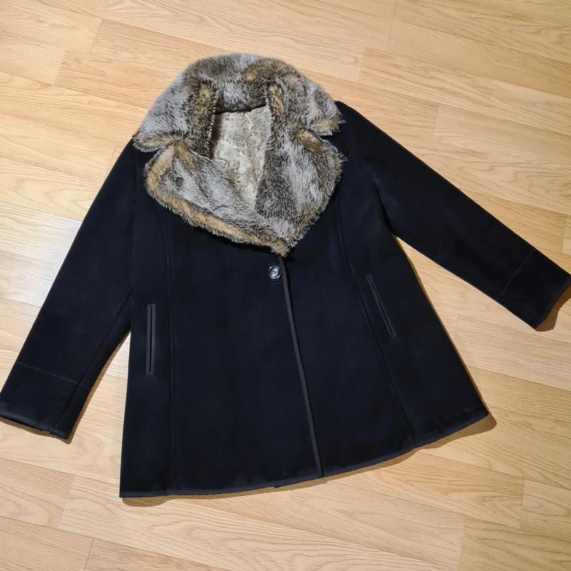 Стильна чорна дублянка з еко-хутром від next, розмір eur 42 (uk 14)