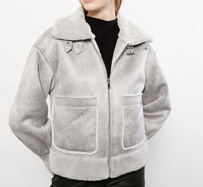 Тепла дублянка з замші, з відкладним коміром і довгим рукавом для жінок