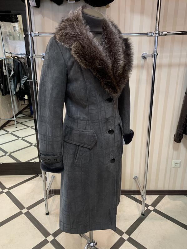 Чудове пальто ! Красива дубленочка , якісне покриття з нанесенням малюнка в клітку ! Комір хутро вовк ! Розмір підбираю за Вашими замірами