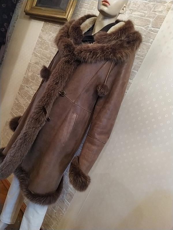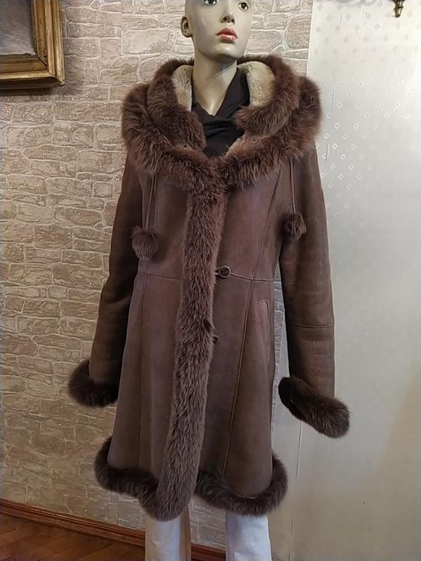 Натуральная дублёнка с мехом песца, состояние идеальное, носилась малопог 52, пот50, поб 57, длина 102, рукав 72, плечи41