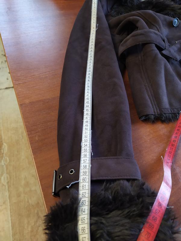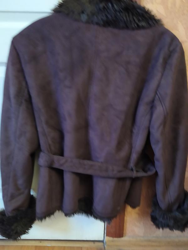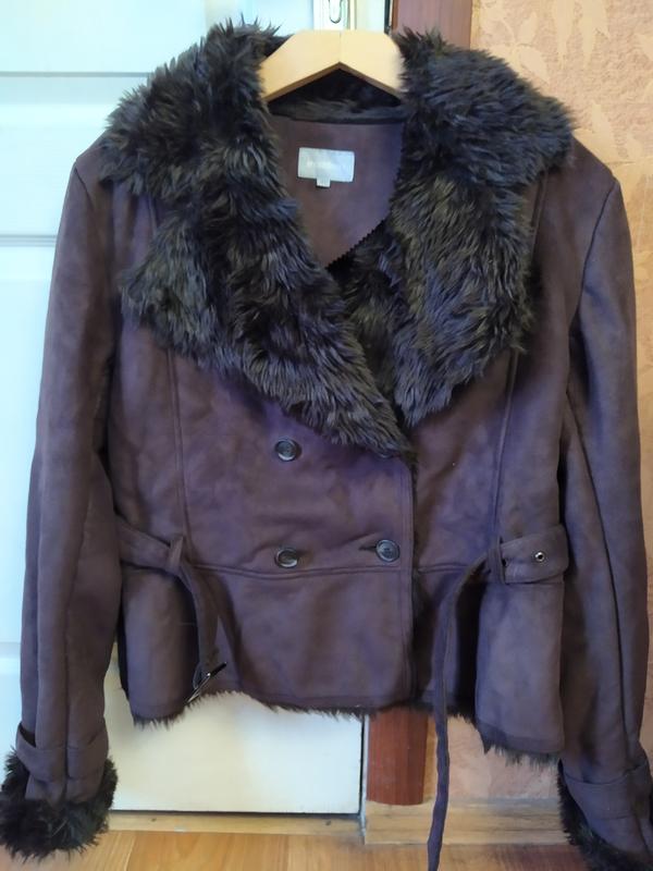 Дуже крута стильна дублянка з штучного хутра. В ідеальному стані. Хутро відмінної якості. Тепла і якісна. На рукавах діючі ремінці. Всі замки робітники. Рукава всередині теж з хутром. Розмір М. На теплий одяг типу светр або світшот підійде довжина 59 гр 54 рукав 67 можна загорнути як на 1 фото