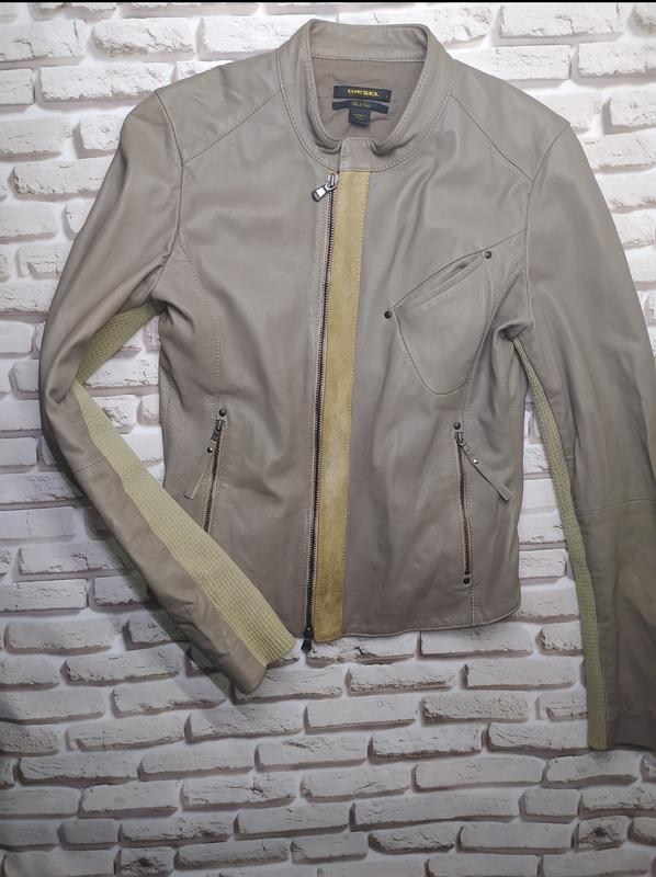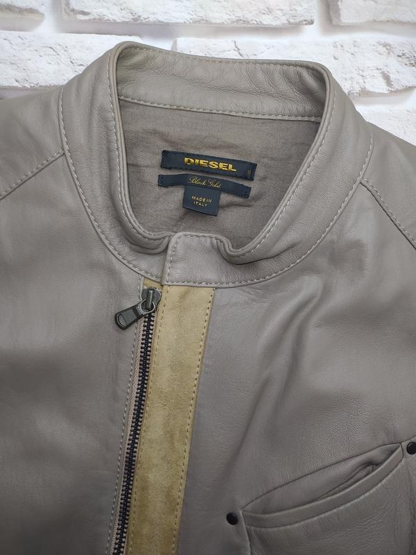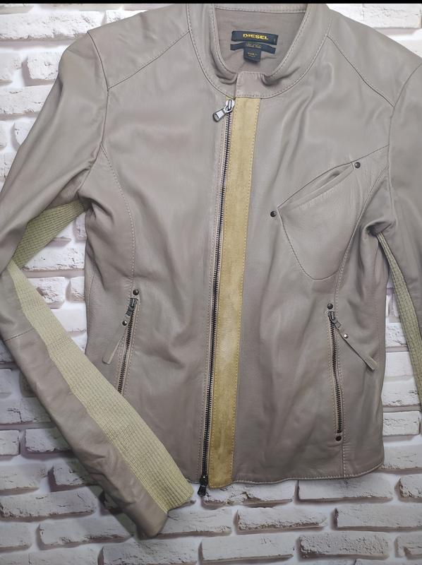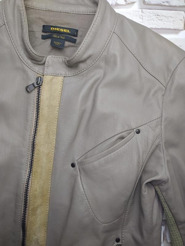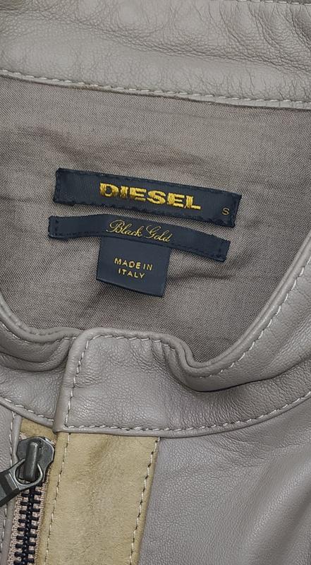 Шкіряна куртка Diesel black goldСтан ідеальнийРозмір SМатеріал шкіраВ'язані вставки по рукавахПідкладка коттон