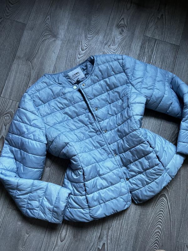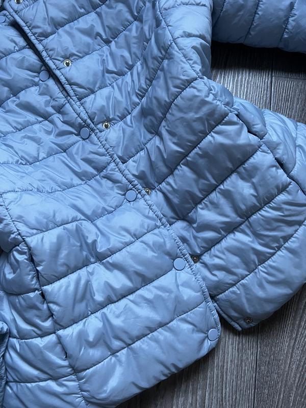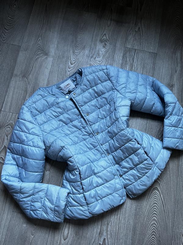 Актуальна легесенька куртка ніжного небесного віддтінку. Розмір вказано 44 але краще на менше повну М/ Л Стан нової речіДовжина 60Пог 55Плечі 42Рукав 61
