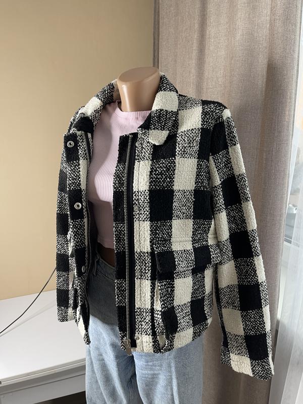 🎁1+1=3 стильна чорно-біла жіночі куртка бомбер на блискавці mango, розмір 44 - 46