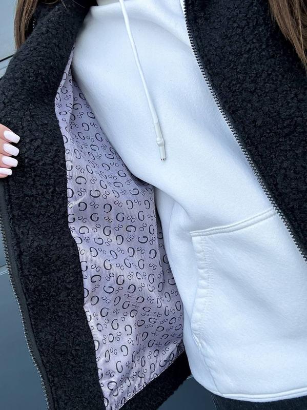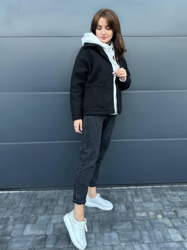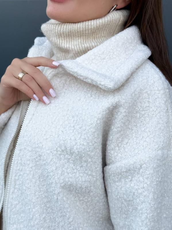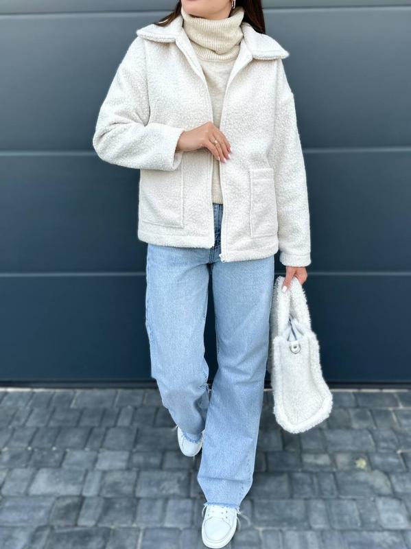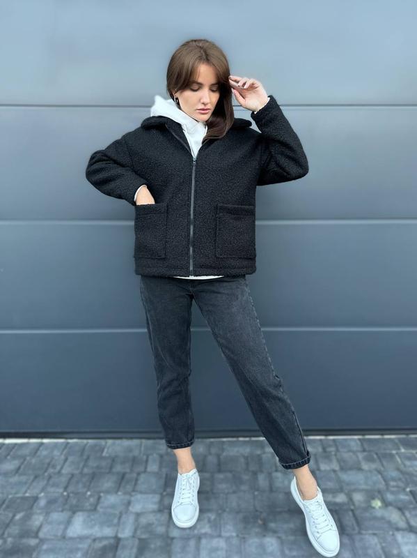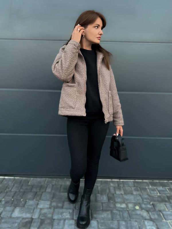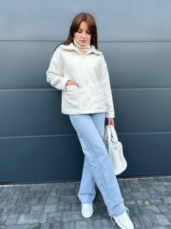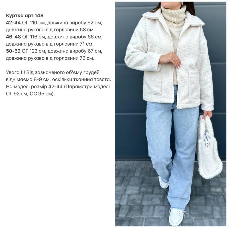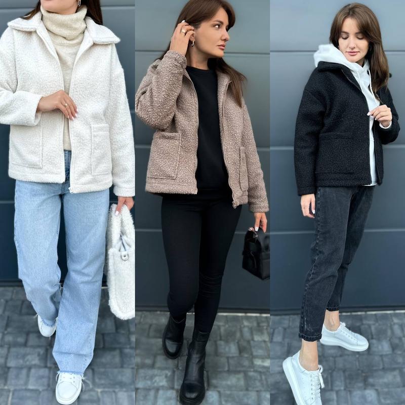 Тканина основа букле-шерсть (баранчик), підклад поліестер Колір чорний, шоколадний, молочнийРозмір 42-44,46-48,50-52Куртка на підкладі, з кишенями , рукав прямий. Застібається на блискавку.Мод.4962\148