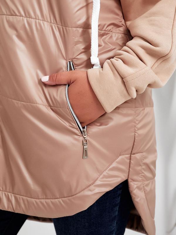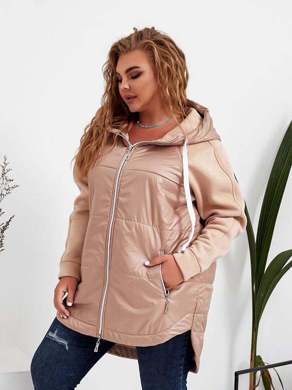 Жіноча демісезонна куртка вітровка на флісі бежева норма батал комбінована демі вітрівка