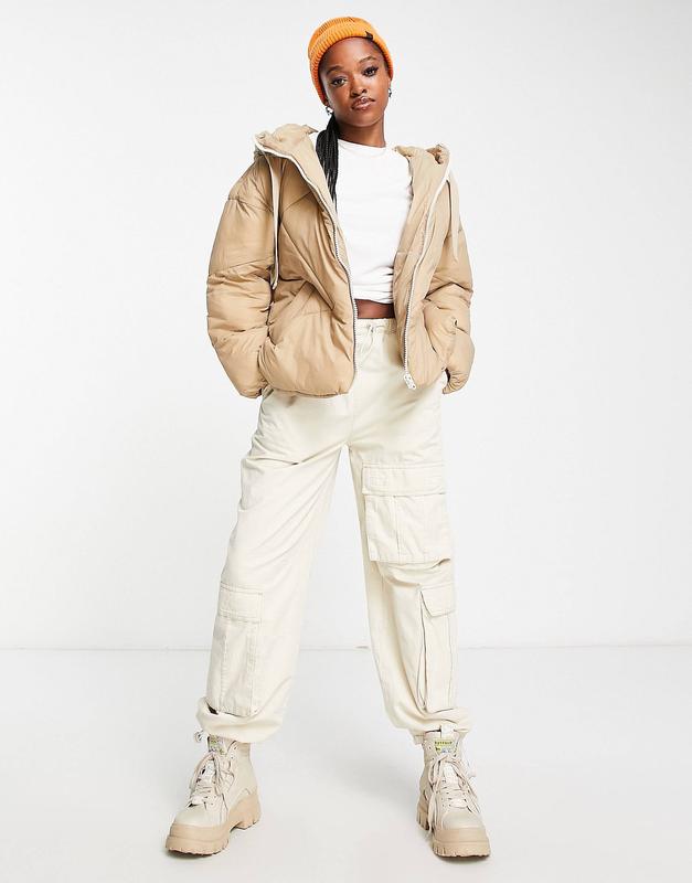 Молочна куртка пуховик stradivarius