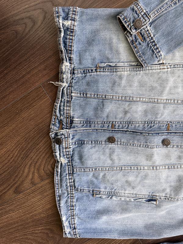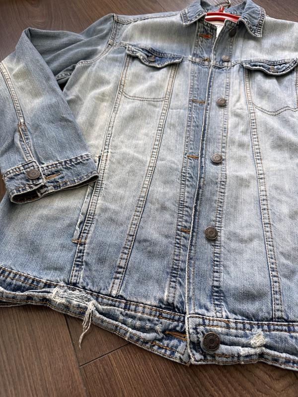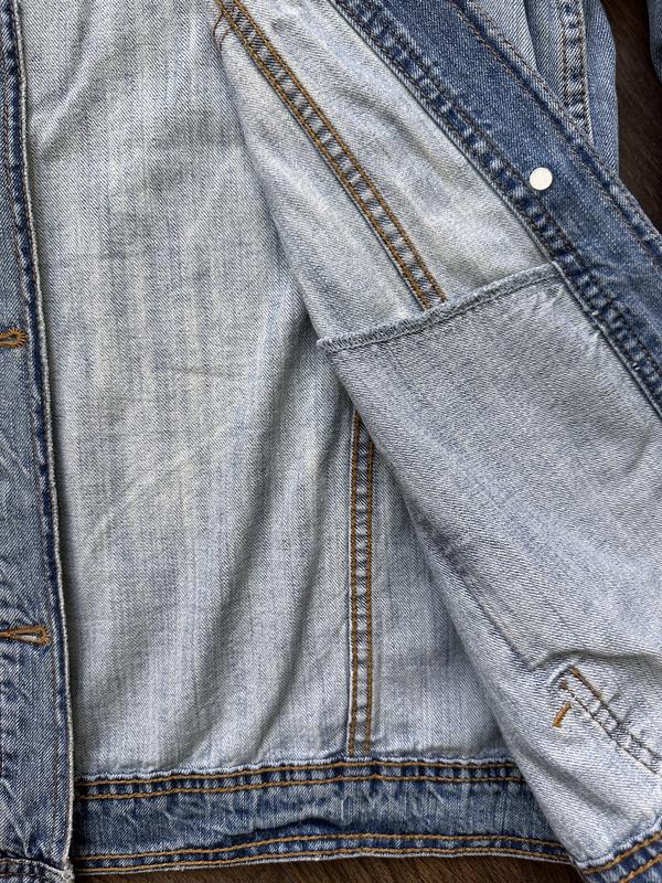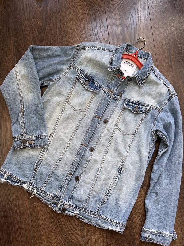 Джинсовка зі спущеною лінією плеча, по бірці S, але підійде і на повномірну М, сам джинс не плотний плечі 48рукав 59довжина 66ширина виробу 55стан дуже гарний