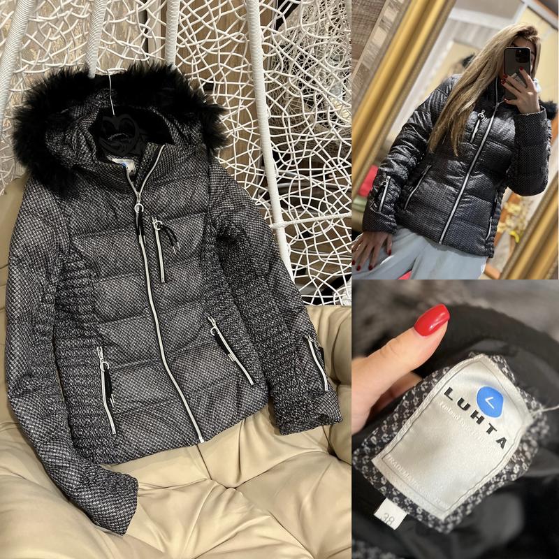 Жіноча зимова куртка, бомбер в чорному кольорі з натуральним трендовим хутром блюфрост, ефектний комір корона 👑, 42-60 розміри