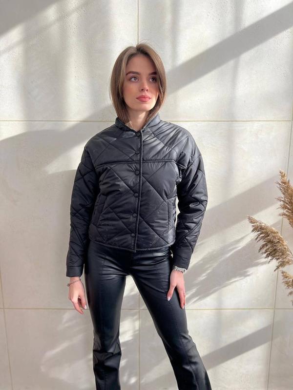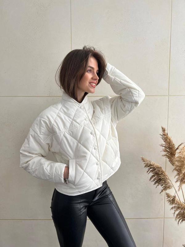 Куртка бомбер Модель 1173Тканина: Плащівка лакє Наповнювач силікон150 підкладка лаке Чудова якість!Розміри: 42--44 КОЛЬОРИ: Чорний, зелений ,айворі , графіт Курточка на закльопках, с не ржавійки Ціна: 1350грн