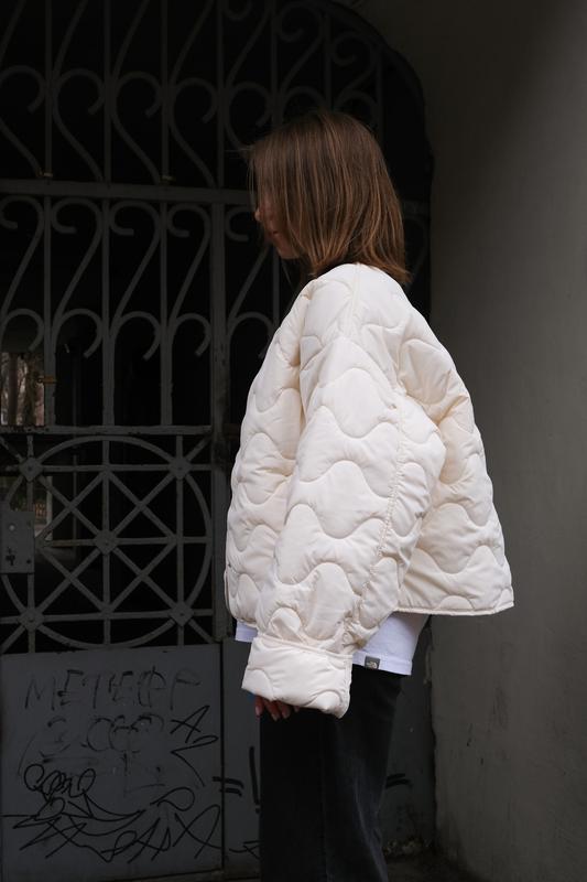 Лайнер молочний , абсолютно новий, крою оверсайз розмір m-l, дуже легкий та зручний, водонепроникний.На рукаві малесенька дірочка, її не видно