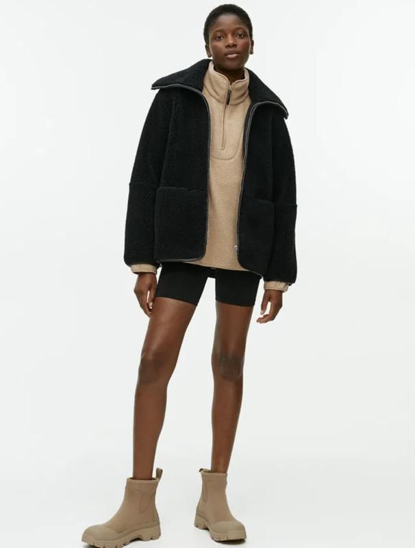 Ворсова куртка вільного крою из переробленого поліестеру з шкіряними переплетами. Має застібку-молнію на вороті та два кармани спереду. Внешний слой: Полиэстер 100% Подкладка карманов: , Хлопок 100% Переплет: , Кожа 100%