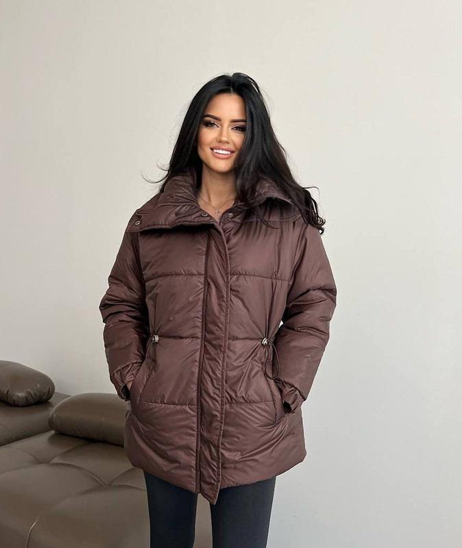 Куртка жіноча оверсайз без капішона. Є фіксатор куліси за допомогою якої можна регулювати об’єм та силует. Застібається на блискавку. Заміри: (ОГ - 130; ОС - 130) Довжина рукава 73 см. Довжина - 75 см.