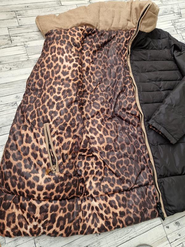 Двухстороння зимова куртка принт леопард, одна сторона чорна, інша леопард