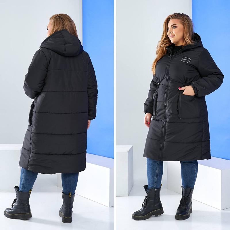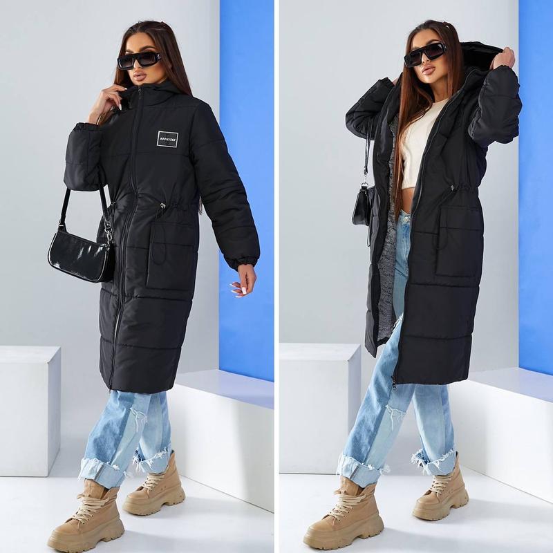 Пальто стьогане з капюшоном та накладными карманами . Манжет рукава на широкий резинці.