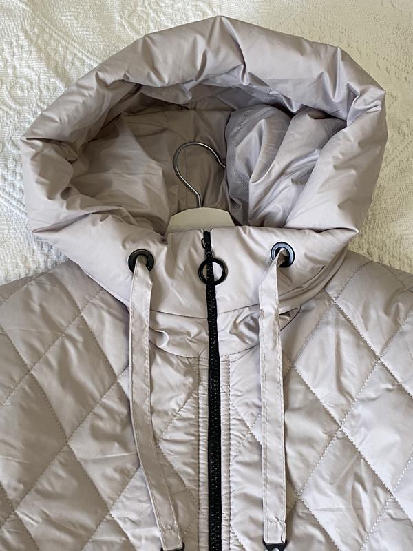 Куртка пальто тепле легке на синдіпонє з капюшоном колір світлий сіро - кремовий з пурпурним відтінком. Красиве та комфортне.