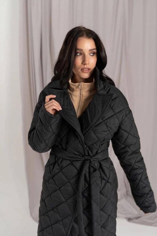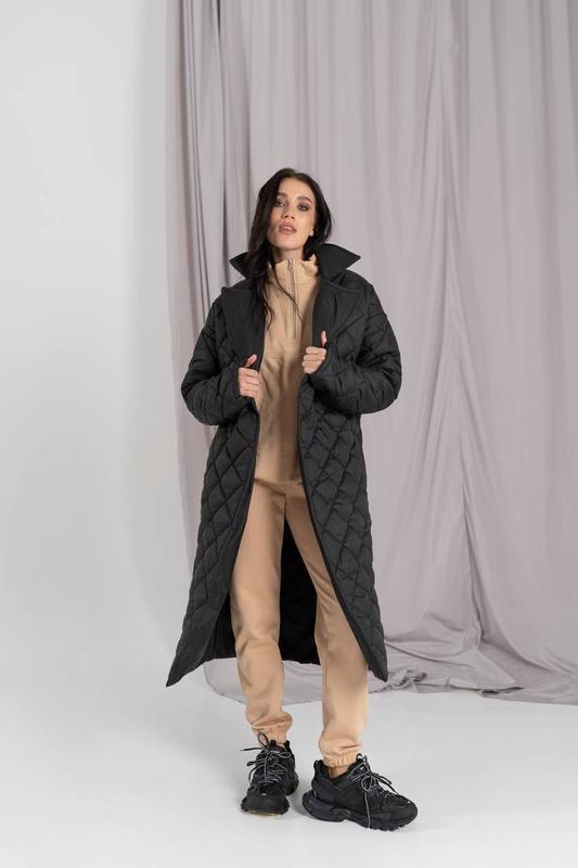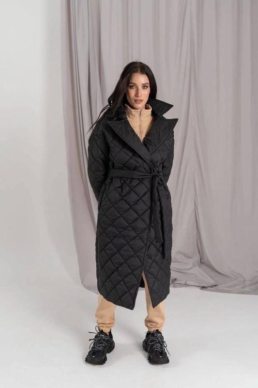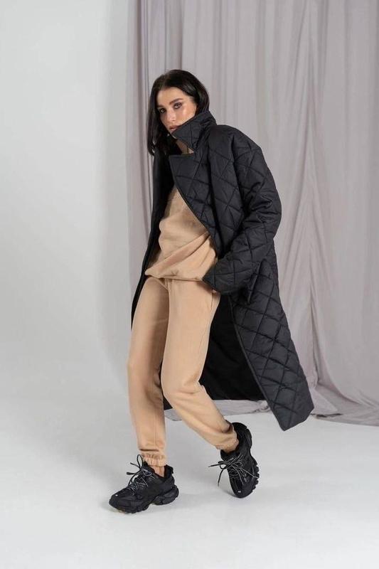 материал: с одной стороны - стеганая плащевая ткань на силиконе 250 плотности черного цвета. С другой- плащевая ткань тоже черного цвета. Длина изделия 115 см, длина рукава от плеча 65 см.