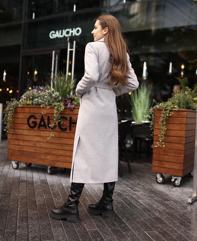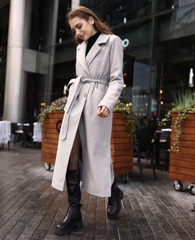 Пальто у сірому кольорі у тоненьку смужку. Без утеплення до 0 градусів.