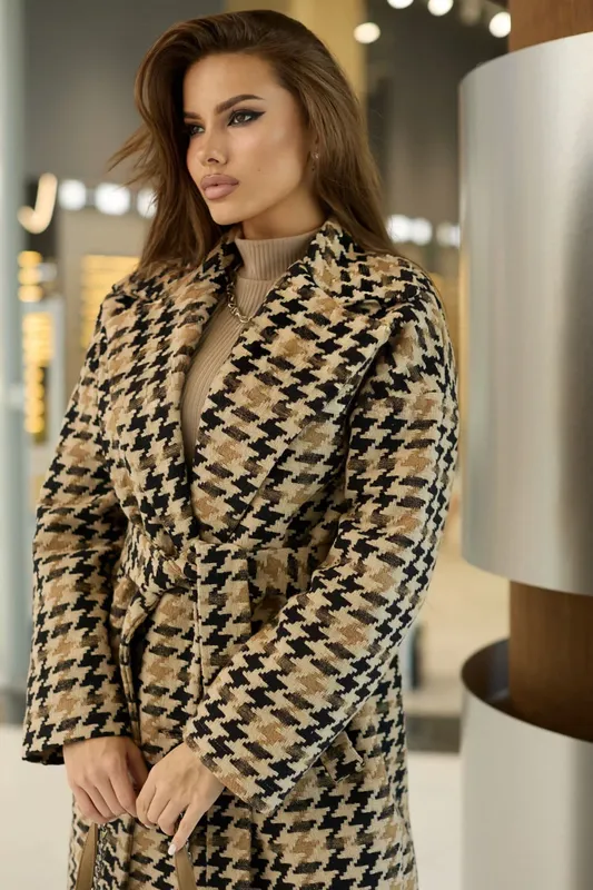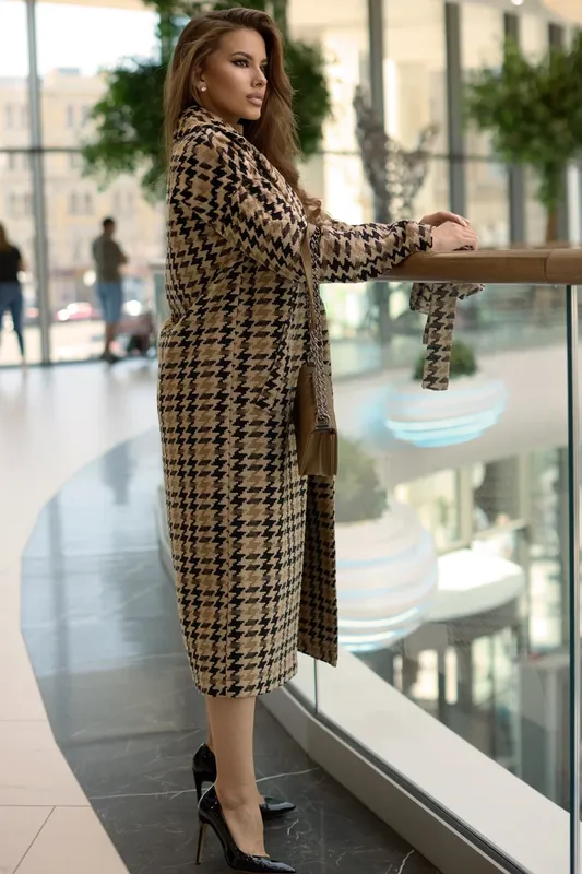 Класичне пальто в кольорі кави відмінно підійде для будь-якого образу. Прямий фасон. Матеріал – жаккард Шанель. Плече спущене. Пальто йде на підкладці. У комплекті є пояс.