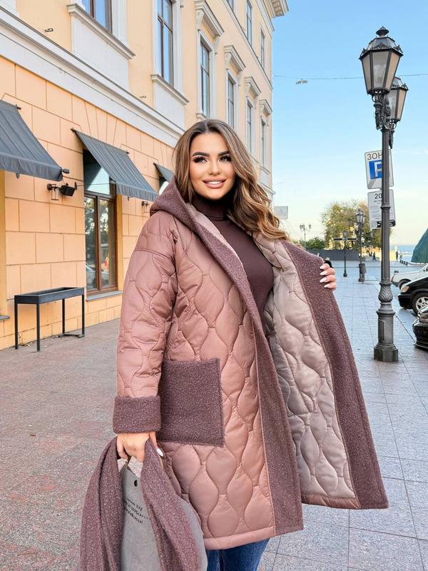 Пальто арт. dol. 331 Пальто на запах стегане на синтепоні, на підкладці + баранчик. Наповнювач не накопичується на дні, а залишається на місці, забезпечуючи рівномірне нагрівання. Добре переносять машинне прання, не збиваються в грудки. Тканина: синтепон стеганий 150 Перевага щільності 150 в тому, що при високих теплозберігаючих властивостях речі залишаються досить тонкими і компактними, що вкрай важливо. Розмір: 48-50, 52-54, 56-58 Колір: чорний, шоколад, молочний, бутилка, графіт, мокко Ціна : 1500 грн