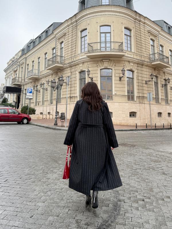 . Підкладка стьобана на синтепоні 100. Крій оверсайз, чоловічий двобортний піджак . Підплечники вшити. Застібки – гудзики, додається пояс – можна приталювати, створюючи інший стиль образу.