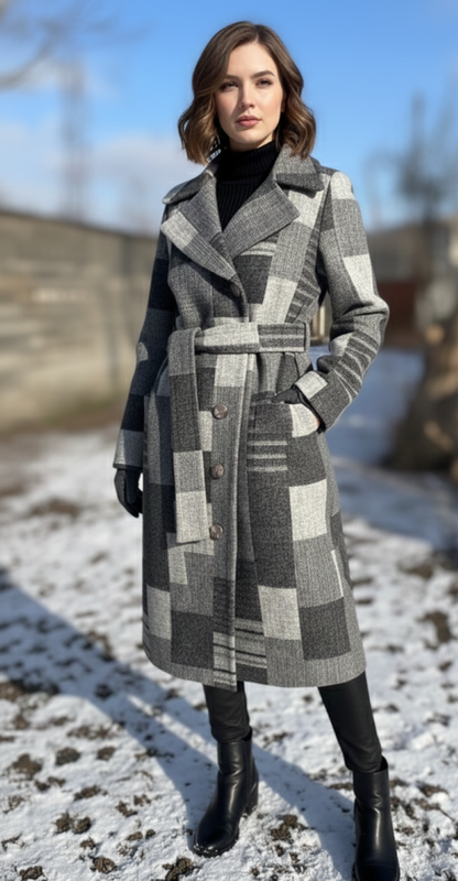 Стильне весняне пальто з італійської вовни класичного крою. актуальний клітинний принт, по...