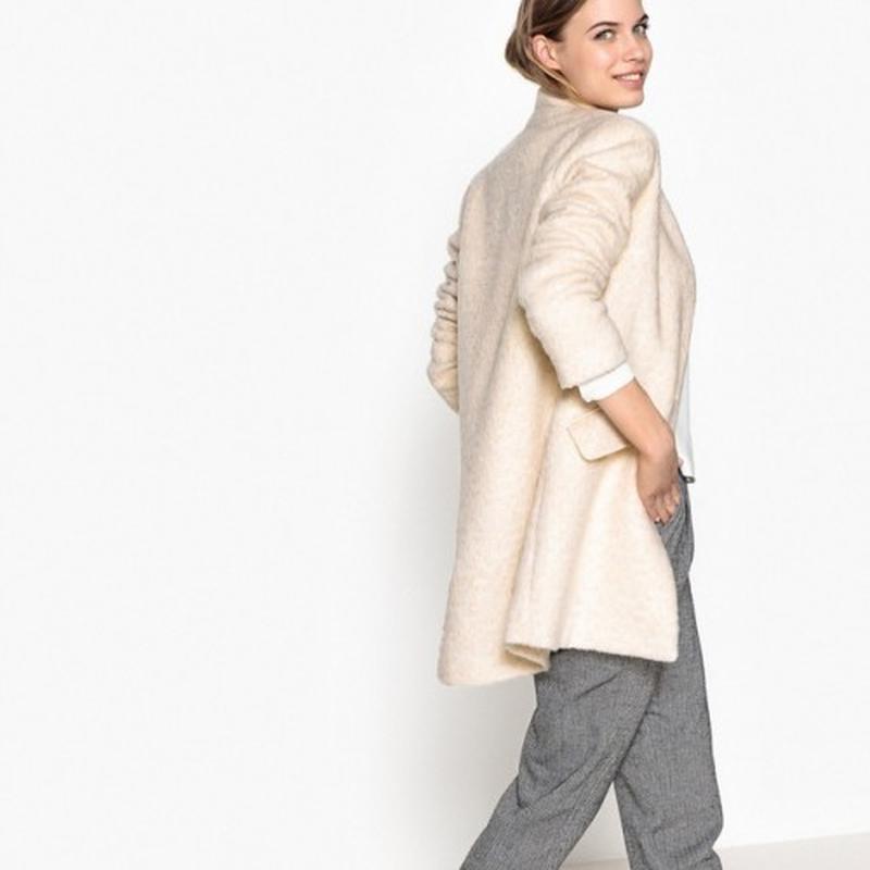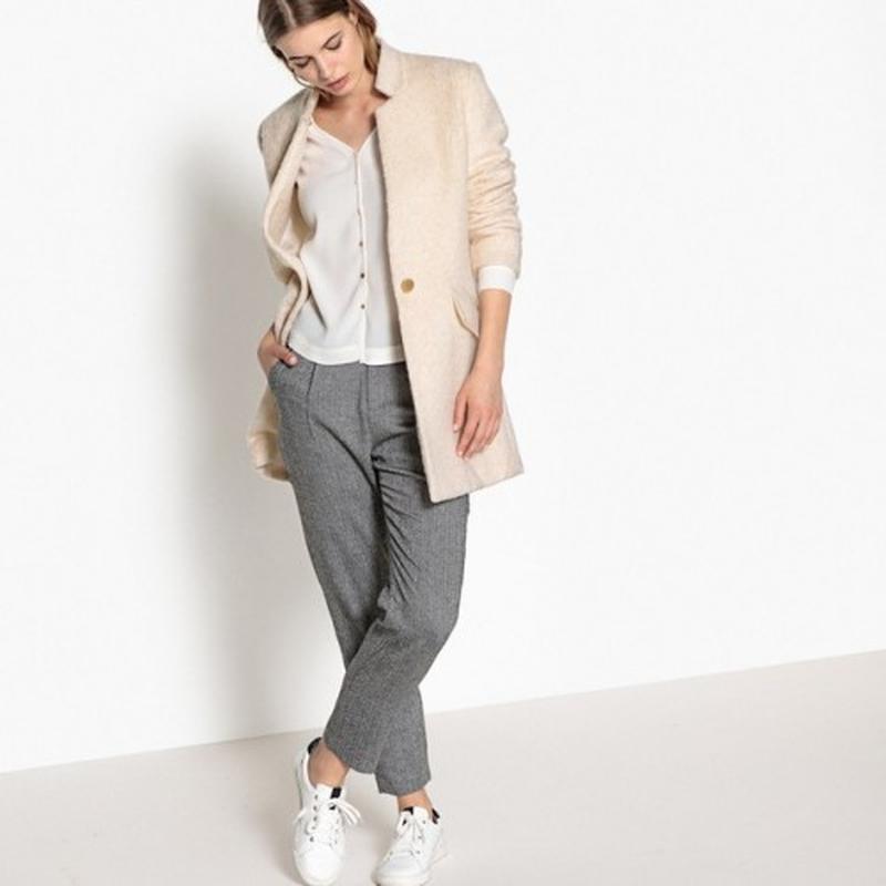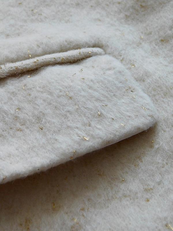 Пальто из смесовой шерсти в комбинации с металлизированной нитью золотистого цвета. Узкие лацканы. Застежка на пуговицу. Качественная белоснежная подкладка. Карманы с клапанами. Прекрасно подойдет как под кроссы,кеды и т.п, так и под обувь на каблуке.