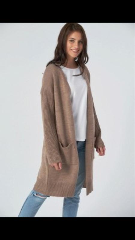 Кардиган з м'якої пряжі, об'ємної в'язки, із заниженою лінією плеча, довгим рукавом, передніми кишенями і ременями за манжет з знизу. дерев'яні гудзики, трохи потерті через прання в машынке. є недолік катишки але можна виправити😊 йде на 46.48.50 р. або one size.таке як на другому фото, перше для залучення уваги😉