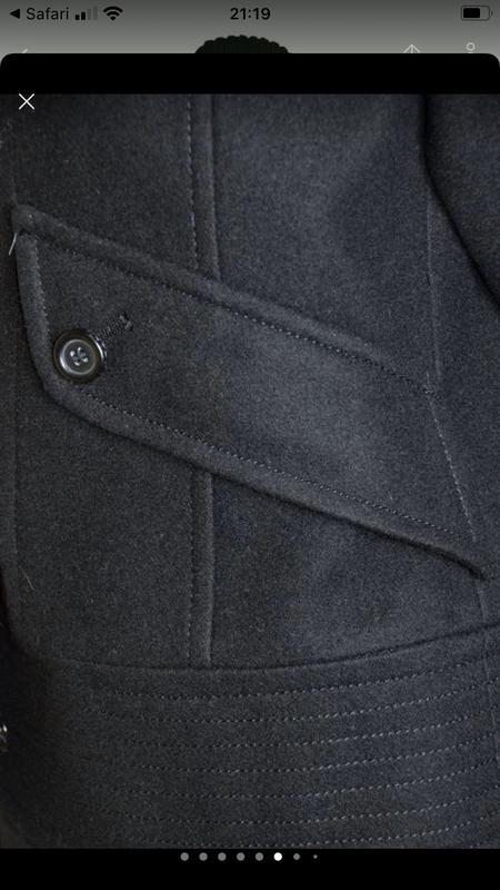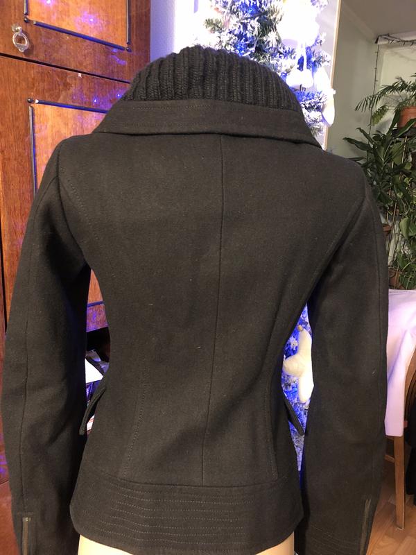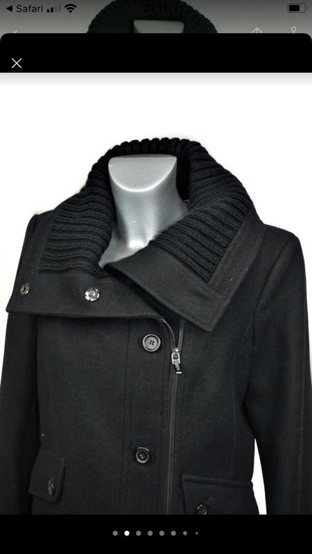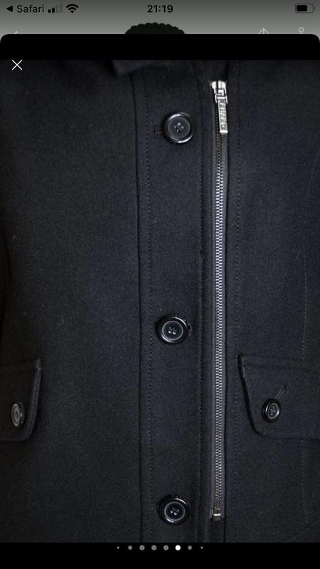 Вовняне жіноче чорне демісезонне напівпальто Phard. Код П35760. Виробництво Італія. Комір стійка з трикотажної обробкою. Рукава внизу на блискавці. Застібка на ґудзики+ молгния. Склад: 80% вовна, 20% поліестер Розмір S Довжина по спинці-55см Плечі 38см ПОГ 42см ПІТ-34см Рукав 62cm