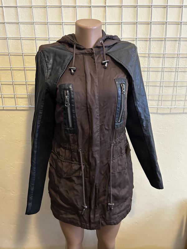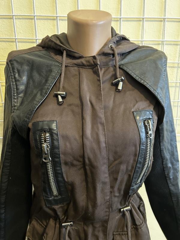 Дефектів немає. Довжина від капюшона 73см, пог- 42 до 45см, пот регулюється шнурком, в не затягнутому виді пів обхват талії 44 до 47 см. Поб - 51 до 53 см багато карманів . Капюшон не знімний, регулюється стяжками.
