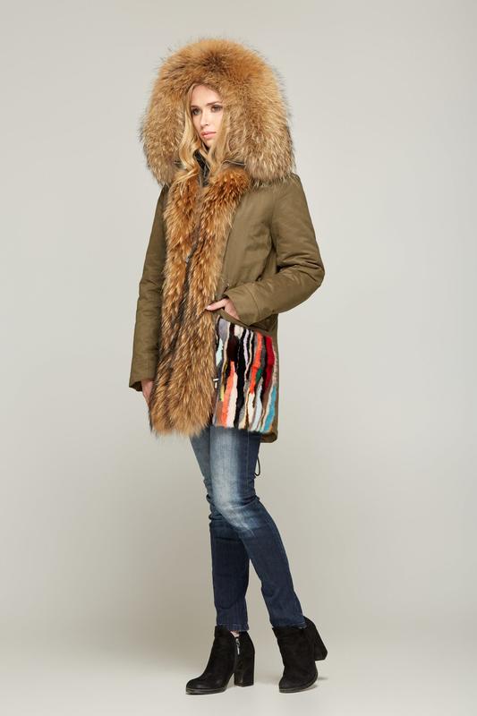 По краю капюшона і бортах виробу оторочка з натурального хутра єнота.