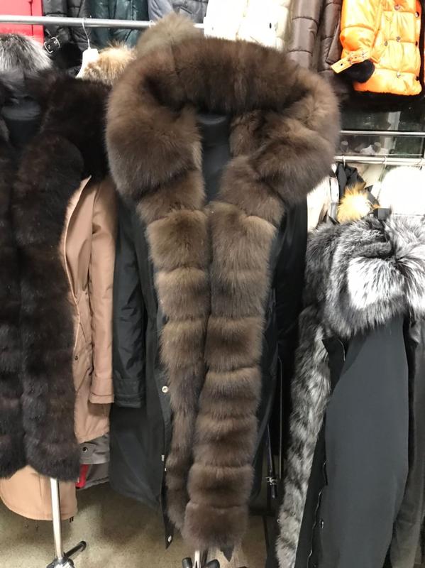 Роскошная парка в черном цвете с натуральным мехом песца, окрас под соболь