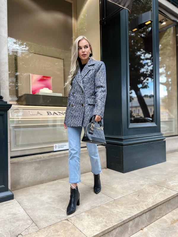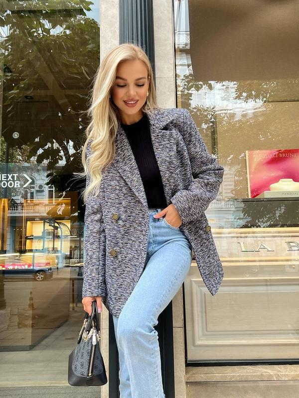 ▫️ Материал: твид ▫️ Цвет: синий▫️ Размеры: S, M▫️ Длина изделия: 70 см▫️ Длина рукава: 63 см ▫️ Параметры модели: 89-63-90▫️ Рост модели: 168 см ▫️ На модели размер: S
