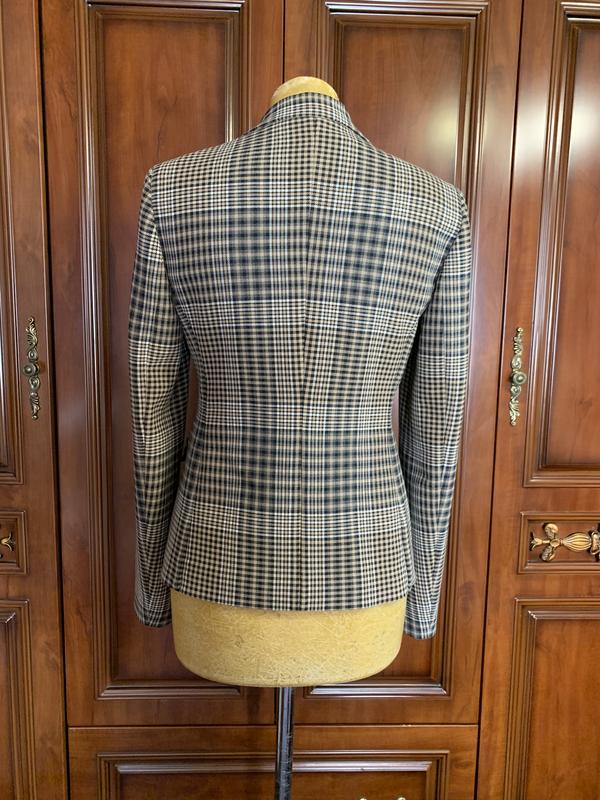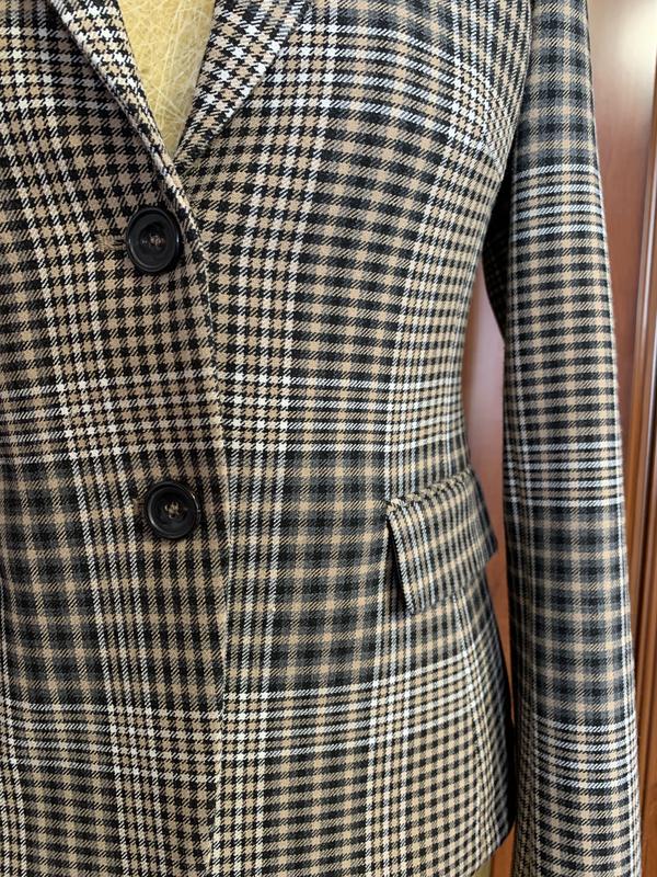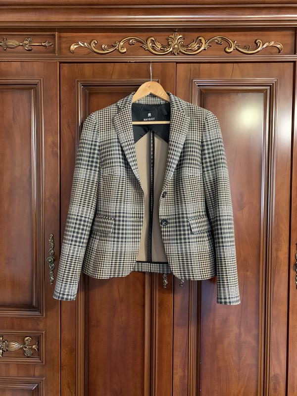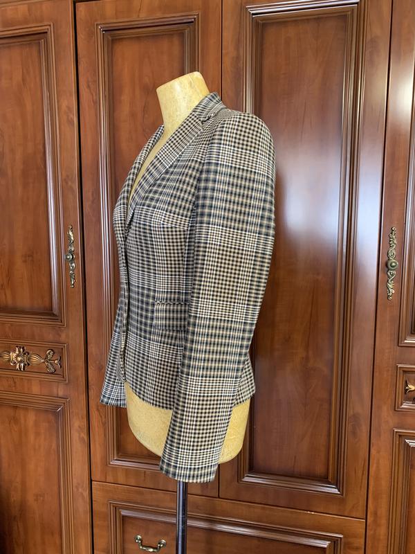 Дуже гарний демісезонний блейзер бренду NAVYBOOT бежево-коричневого кольору в клітинку. Пілочка на підкладці, спинка без підкладки. Жакет приталеного силуету, з надплічниками, дуже гарно лягає по фігурі, чітко тримає форму. Тканина приємна щільна, мʼяка. Дуже якісне пошиття та ідеальний крій. Клітинка співпадає по деталях. Ідеальне доповнення до вашого гардеробу. Піджак новий, без паперової бірки.