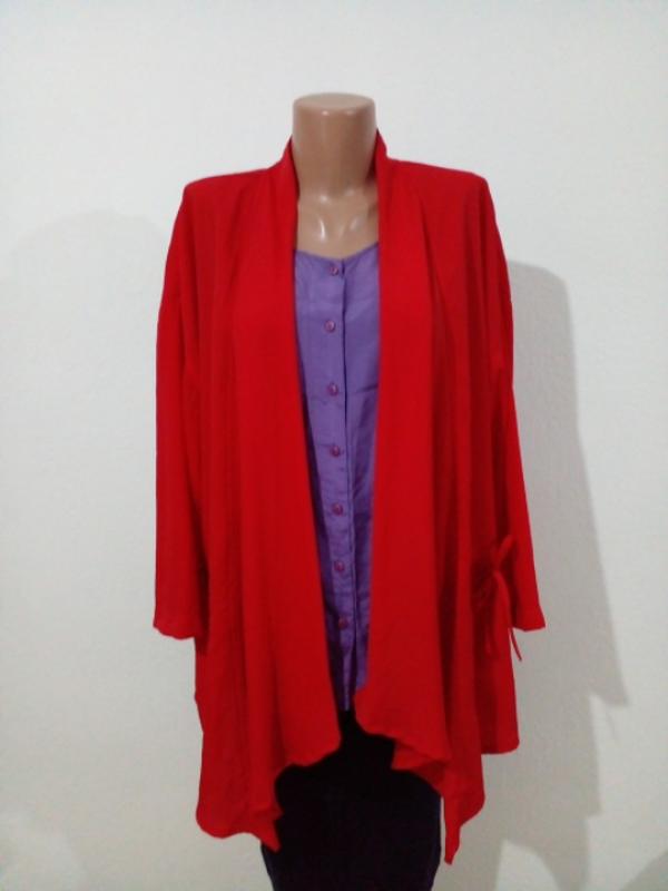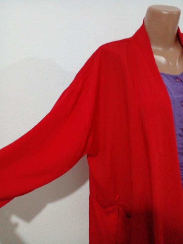 Не застібається, має кишені, рукав довгийМірки по спиніплечі-63-64( спущені)пог-65-70поб-65-75рукав-75( від горловини), біцепс-25довжина-75-80
