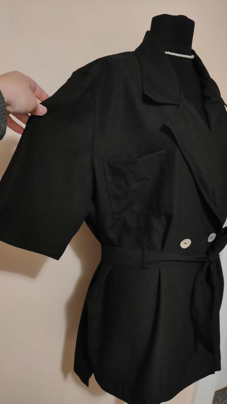 піджак жакет на короткий рукав стильний тренд Заміри: довжина 81см, рукав 33см, ПОГ 63см, ПОТ 61см, ПОБ 67см, плечі 44см.