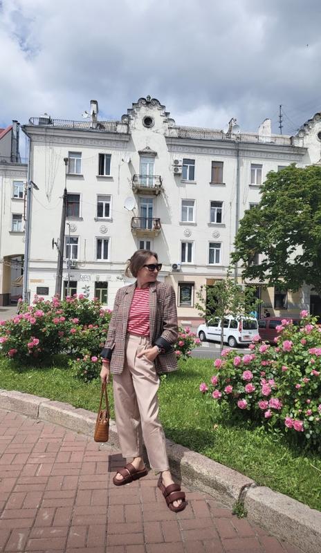 Щільний піджак . Гарно тримає форму. У складі шерсть, віскоза та котон. Дуже комфортний. Гарна кольорова палітра. Розмір М - та прекрасно сяде на С також. Має 2 кишені. На підкладці. Дефектів нема. Застібається на 1 гудзик. Довжина по спинці 68см, довжина рукава від лінії плеча 62см, ширина від плеча до плеча 40см.
