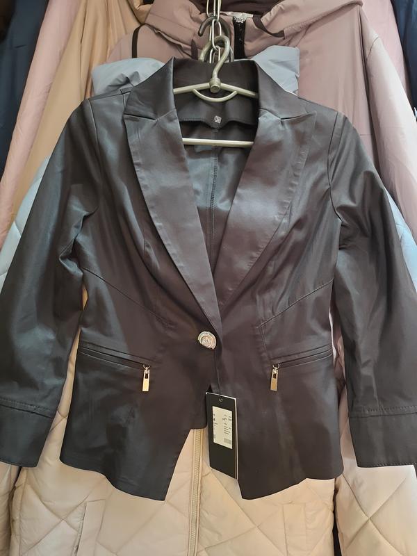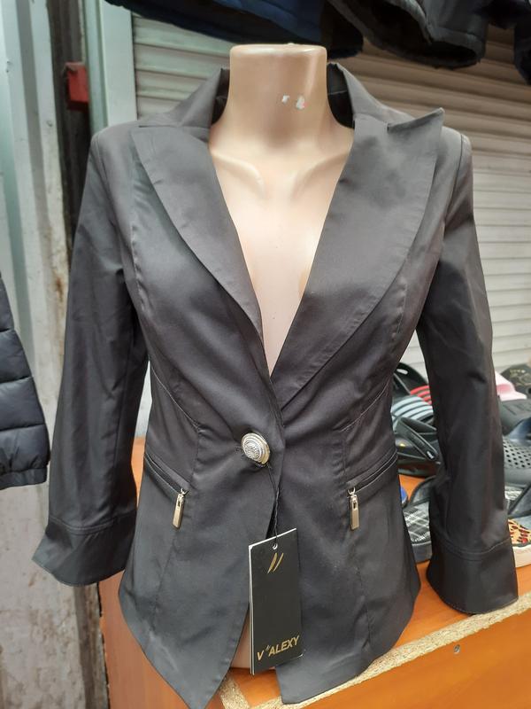 Гарний піджак 36р.,38р. без підкладки в чорному кольорі. 36 р. Пог 40 пот 36 поб 40 рукав 49 довжина 5138 р. Пог 42 пот 37 поб 42 рукав 49 довжина 51