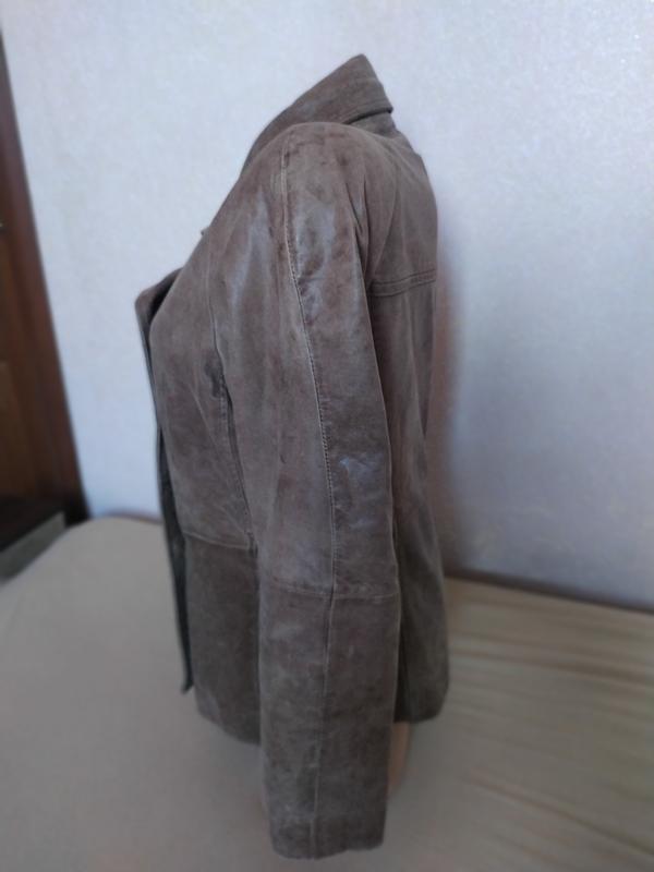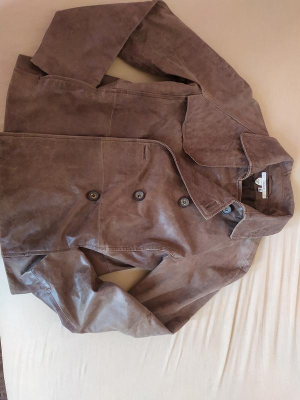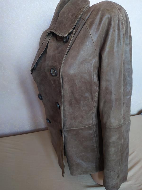 кожаный пиджак из состаренной кожи , сверху был декор и после отпаривания остались следы от швов,в носке не заметно