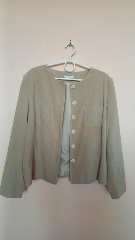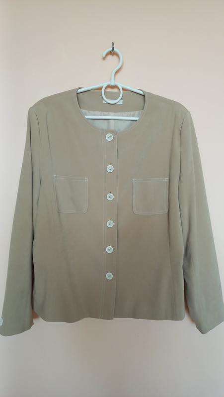 Піджак в ідеальному стані, як новенький! Якісний, фірмовий, стильний, має підклад, батальний! Колір молочний, бежевий! Заміри: довжина від плеча 60 см, підмишки 60 см, талія 56 см, по низу 62 см, тканина не тягнеться, потрібно враховувати запас, талію можна регулювати шнурочками з середини! У продажу ще є речі такого розміру, пишіть, запитуйте, буду рада щось запропонувати)